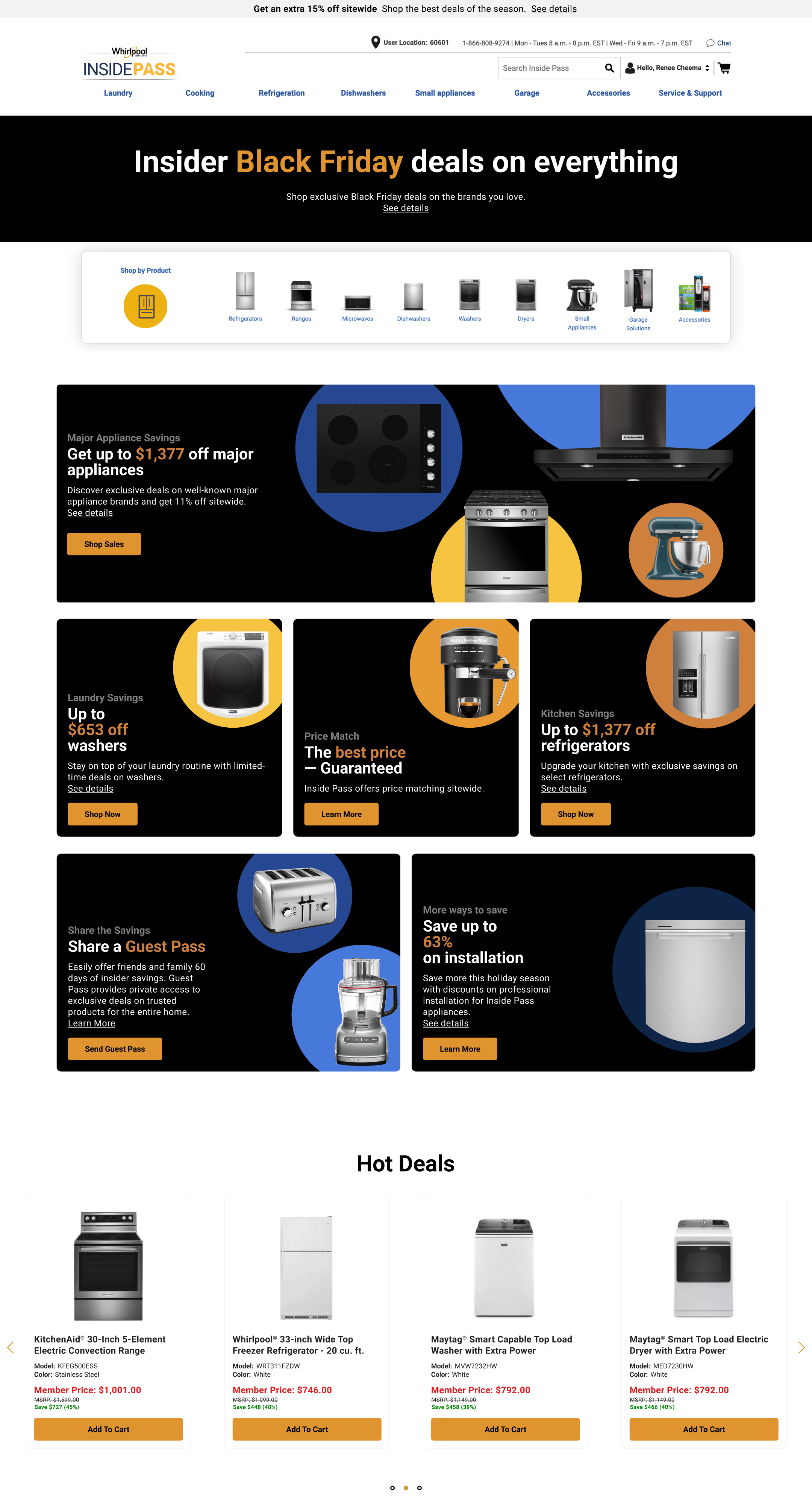 I collaborated with writers, designers and creative directors to create the 2022 Black Friday promotional identity for Whirlpool's employee perks website, Inside Pass.