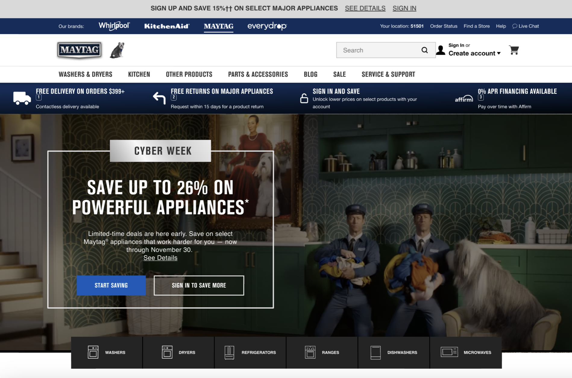 I collaborated with writers, designers and creative directors to create the 2022 Black Friday promotional identity for Maytag.