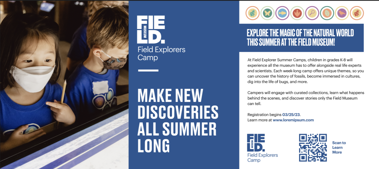 The Field Museum needed print and digital assets that teased their upcoming Field Explorer Summer Camps to families in the Chicagoland area. My team was tasked with creating a direct mailer, online banners and social content that would help drive awareness of their summer camp program so that the Field Museum was top of mind when summer activities rolled around. Below are examples of the creative execution where I served as lead copywriter.